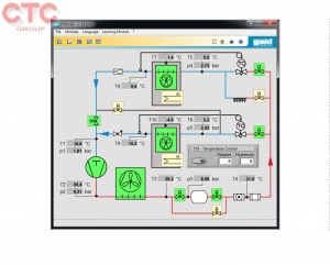 Mô hình hệ thống làm lạnh với giai đoạn làm lạnh và kết đông gồm có hai buồng lạnh riêng biệt với giàn bay hơi và các phần tử mở rộng. Những giàn bay hơi có thể tùy chọn hoạt động kết nối song song hoặc nối tiếp. Hai quạt máy trong buồng làm lạnh hỗ trợ việc đạt được sự phân bố nhiệt độ. Với bộ đốt nóng, tải làm lạnh có thể được thêm vào để mô phỏng. Một trong những buồng lạnh có thể tùy chọn hoạt động với một van xả khí hoặc với một ống mao dẫn như thiết bị mở rộng. Các chế độ hoạt động khác nhau được thiết lập thông qua các van điện từ. Một bộ điều khiển áp suất bay hơi cho phép trong chế độ buồng lạnh hoạt động song song, việc điều chỉnh mức nhiệt độ là độc lập. Tất cả các thiết thị được sắp xếp gọn gàng trên bảng điều khiển.